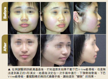 目前我們結合搭配顏面骨雕塑、正顎手術和各項美容整形技術,可以徹底改善一個人的容貌,正顎或削骨手術,都是將臉部線條雕塑的更柔和的手術,若再搭配鼻雕手術、雙眼皮成型術、開眼頭手術、豐額手術、下巴成形術及自體脂肪移植能讓手術結果有畫龍點睛的效果且畢其功於一役。