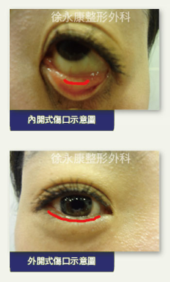傳統割除眼袋手術一般分為內切口手術(結膜面切口),和外切口手術(皮膚面切口),根據眼袋類型選擇適合的手術方法。