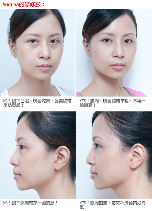 但隨著十二年過去,她眼下的凹陷,已經深到像深溝,看起來即下垂又黯淡,感覺總是一副很累的模樣,讓她很傷神。Audrea說:「我喜歡用自然的方式來抗老化,平時也會補充膠原蛋白等美容飲品來保養全身的皮膚,但是眼周的凹陷,一直還是讓我很困擾,感覺整個眼周都是下垂的,很沒精神。」。